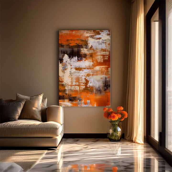 Elevate your space with the Amber Haze Canvas — an abstract blend of warm amber, copper, and soft neutrals that brings movement and energy to any modern room. Perfect for living rooms or offices seeking a bold statement piece.