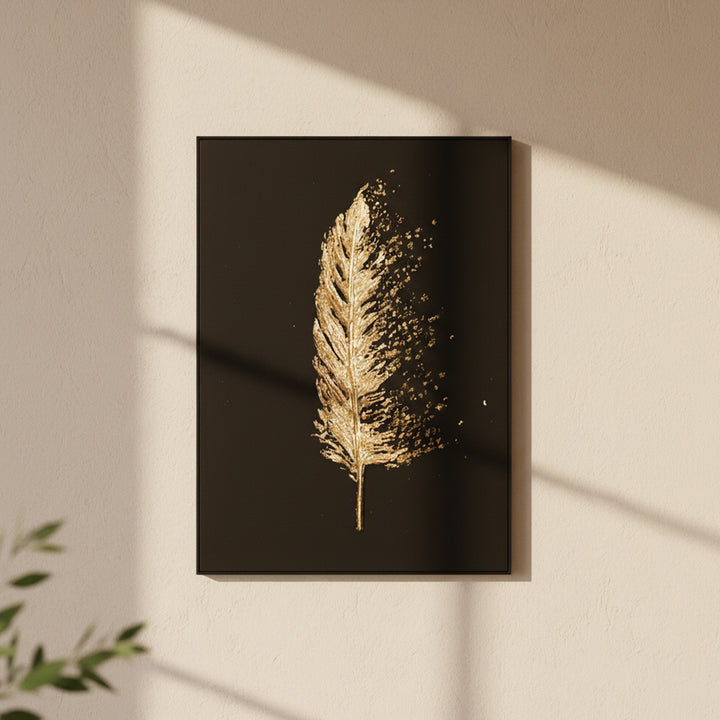 تصميم أنيق يدمج البساطة بالفخامة من خلال ورقة مضيئة بلون لامع على خلفية داكنة، ليمنح جدارك لمسة من الصفاء والجمال العصري.