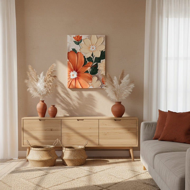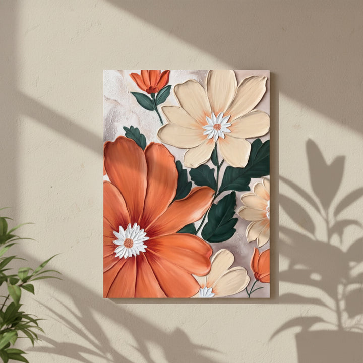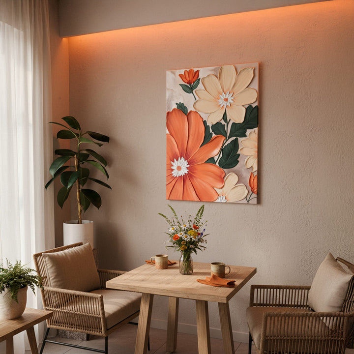 Bring life and color to your walls with the Blooming Grace artwork — a beautiful floral piece that blends warm orange and soft cream tones to create a serene, elegant ambiance in any room.