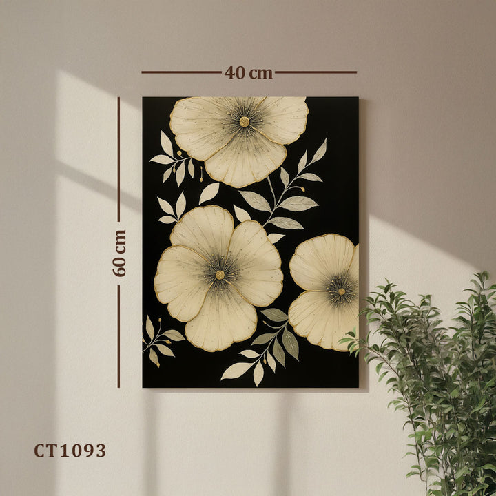Add a touch of timeless sophistication to your home with Noir Essence Canvas. Featuring delicate golden floral details on a deep black background, this piece brings balance, contrast, and luxury to any interior.
