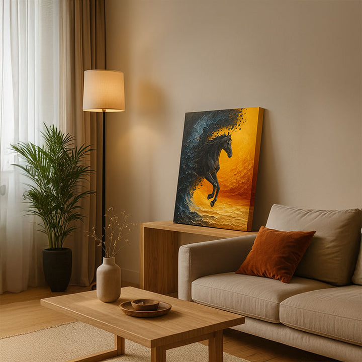Featuring a powerful black horse in vibrant tones, this artwork adds strength and elegance to any room.